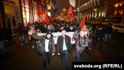 В Минске накануне парламентских выборов прошла акция протеста оппозиции. Представители гражданской кампании "Европейская Беларусь" и незарегистрированной партии "Народная грамада" вечером 16 ноября провели совместный митинг на площади Свободы в Минске. После этого участники акции направились в сторону Центризбиркома.